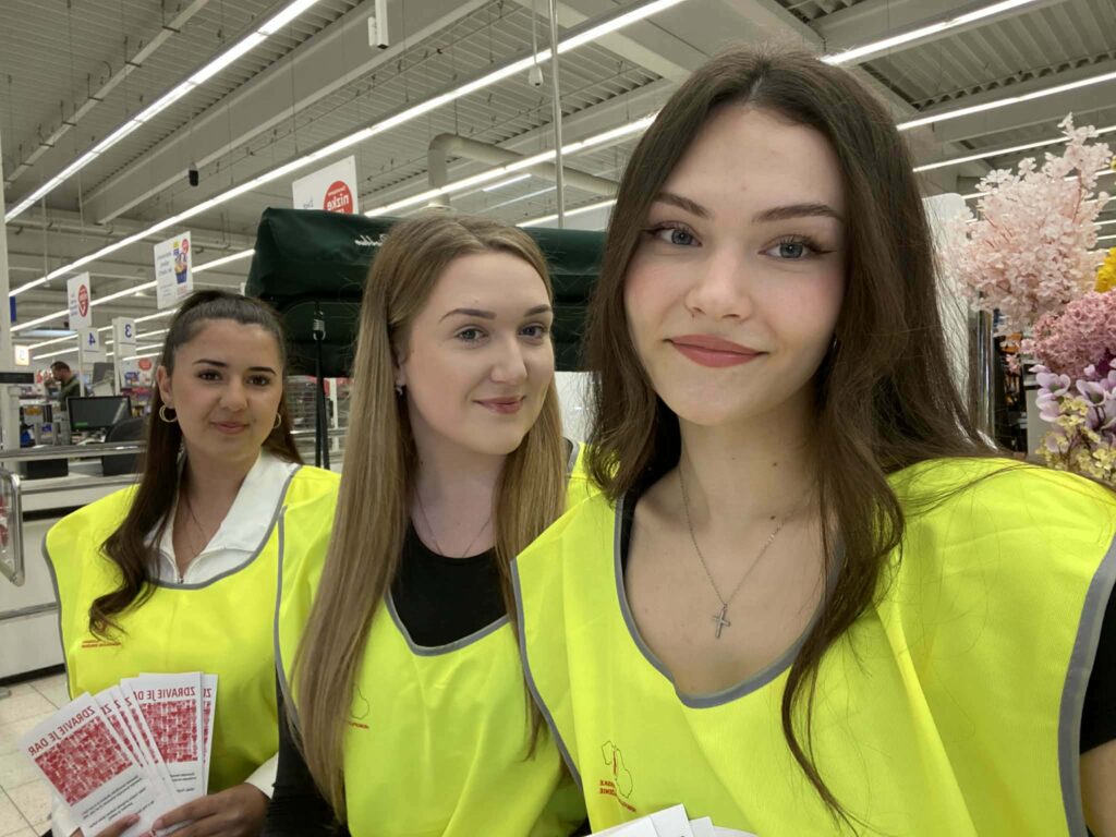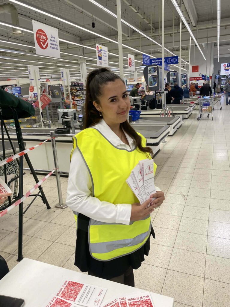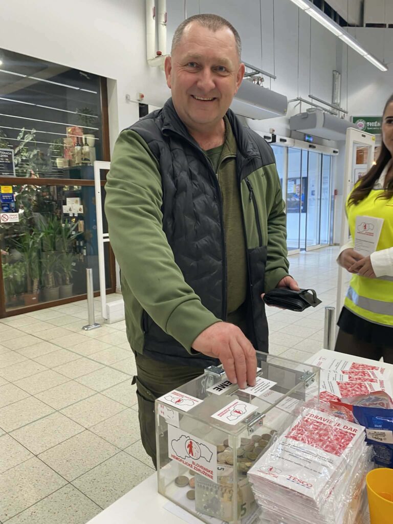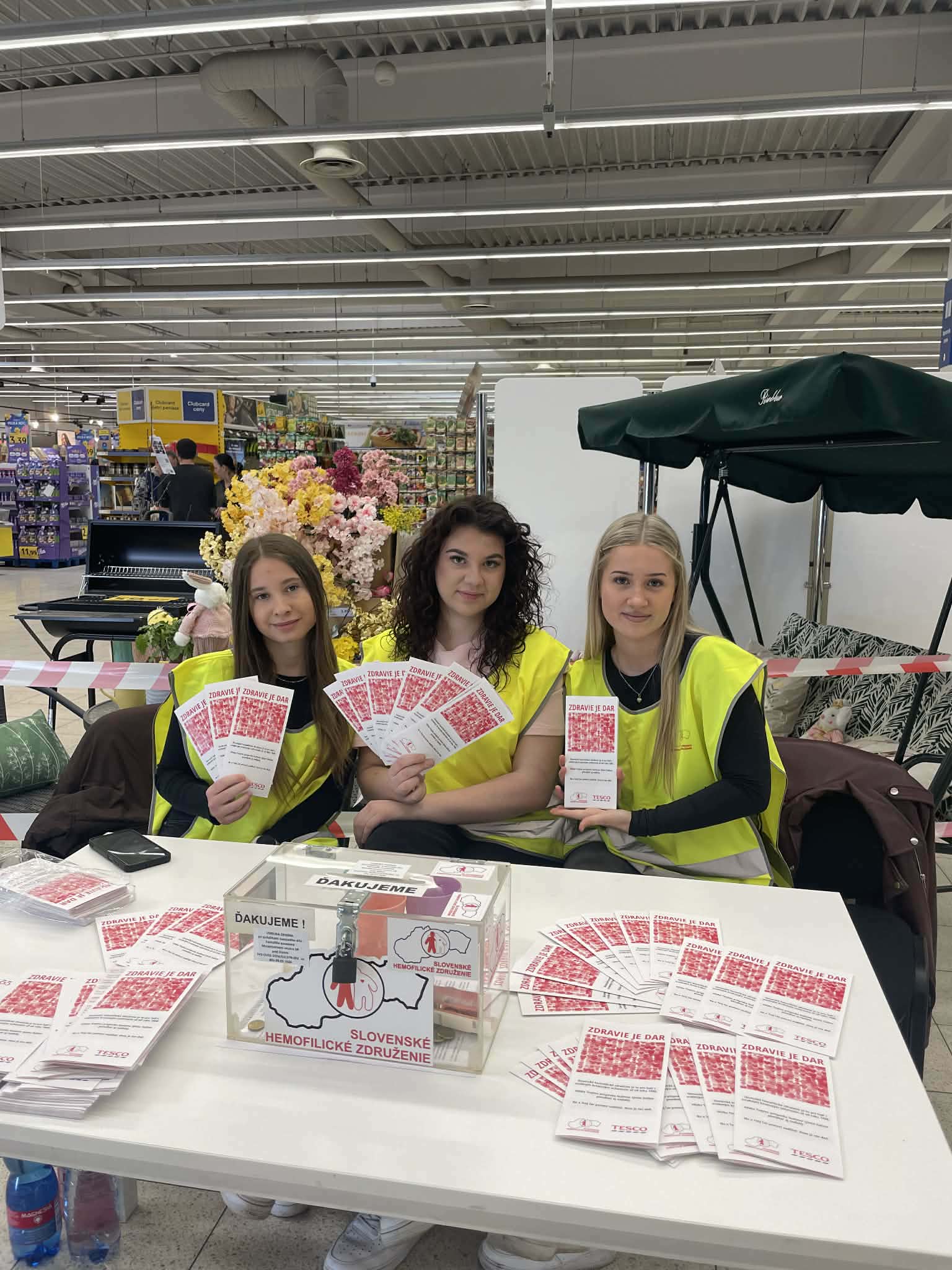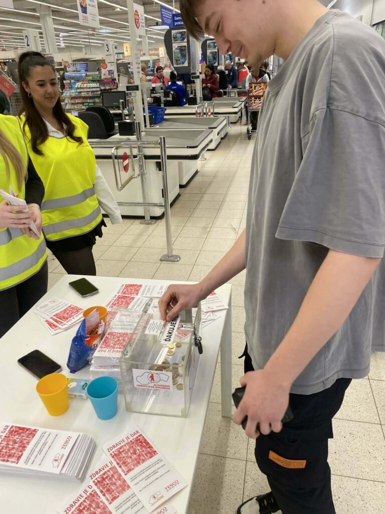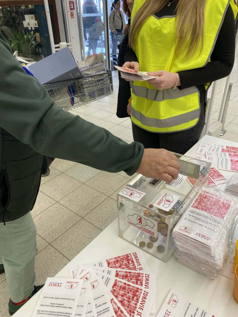 V dňoch 12. a 13. marca 2026 ste mohli naše tretiačky stretnúť v priestoroch prevádzky Tesco, kde s úsmevom a nasadením zbierali príspevky do prenosných pokladničiek. Pre dievčatá však táto aktivita nebola len o držaní pokladničky. Ako budúce zdravotnícke pracovníčky mali jedinečnú príležitosť prepojiť svoje odborné vedomosti o poruchách zrážanlivosti krvi s reálnou pomocou pacientom. Okrem zbierania finančných prostriedkov dievčatá trpezlivo informovali verejnosť o tom, čo život s hemofíliou obnáša a aké kľúčové je včasné podchytenie tohto ochorenia. Každý príspevok vhodený do pokladničky SHZ priamo pomôže pri: organizovaní rehabilitačných táborov, realizácii sociálnych programov pre deti aj dospelých, zvyšovaní kvality života ľudí s týmto nevyliečiteľným, no liečiteľným ochorením.