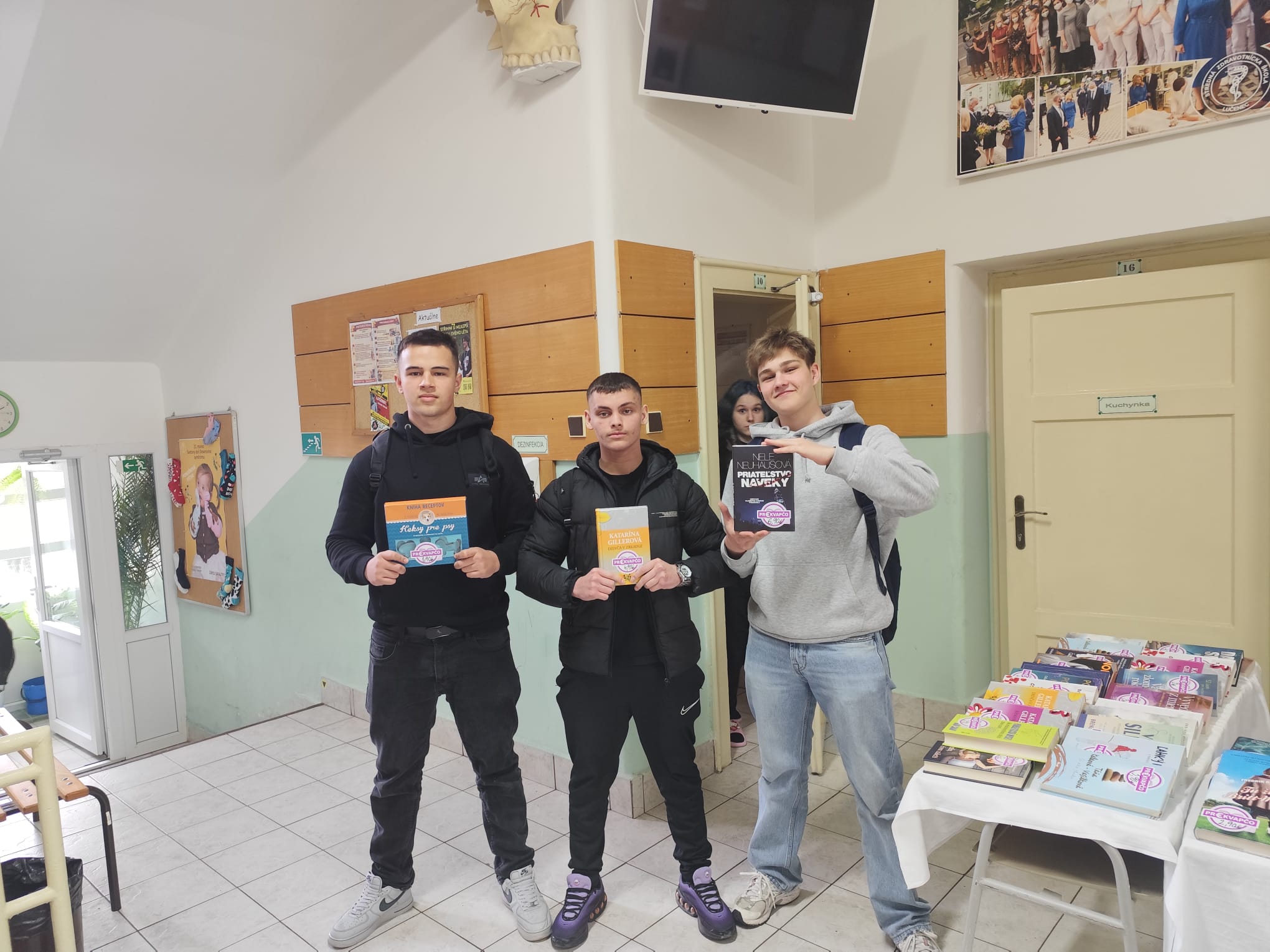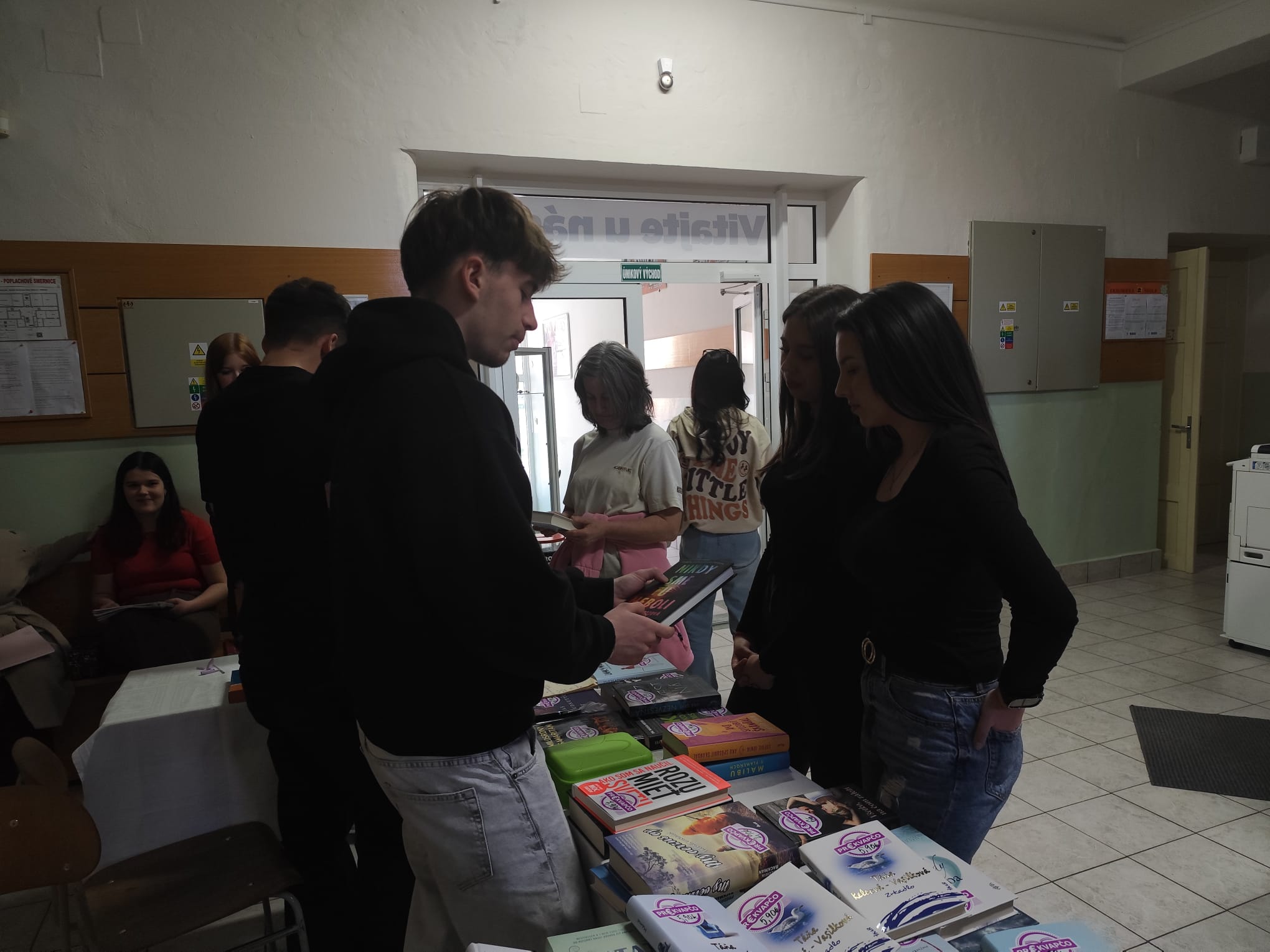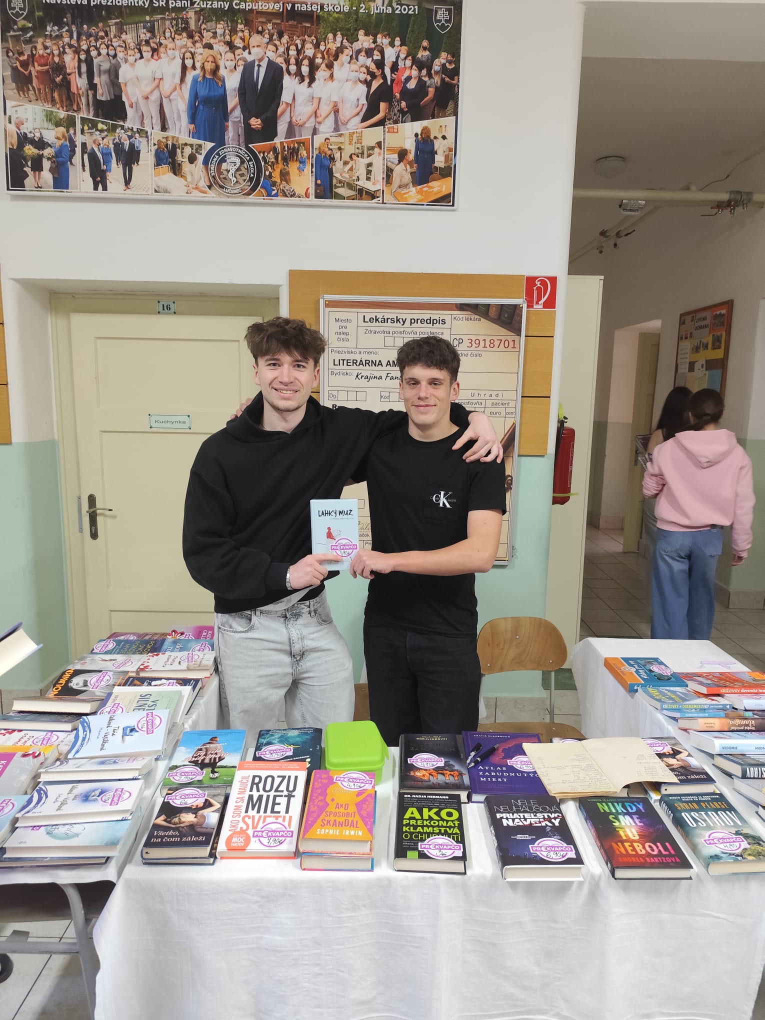 V marci 2026 sme nezabudli na knihu a dve tradičné aktivity, ktorými motivujeme k čítaniu – burzu kníh a čitateľský maratón. Akcia vznikla druhýkrát v spolupráci so školským parlamentom pod vedením Mgr. Beátky Murín. Za knihy a ich výborné ceny ďakujeme kníhkupectvu Dováľ Lučenci. Naši pedagógovia nám čítali na vyučovaní z ich obľúbených kníh. Na burze vo vestibule školy sa predalo viac ako 50 kníh, nakupovali naši študenti, pedagogickí aj nepedagogickí zamestnanci školy. A už len veriť, že kúpa knižky alebo prečítaná ukážka pomohli nájsť medzi nami ďalšieho čitateľa. Veľká vďaka patrí Mgr. B. Murín za originálny plagát a video so študentským parlamentom, školníkovi a našim upratovačkám za nezištnú pomoc s knižnou burzou.