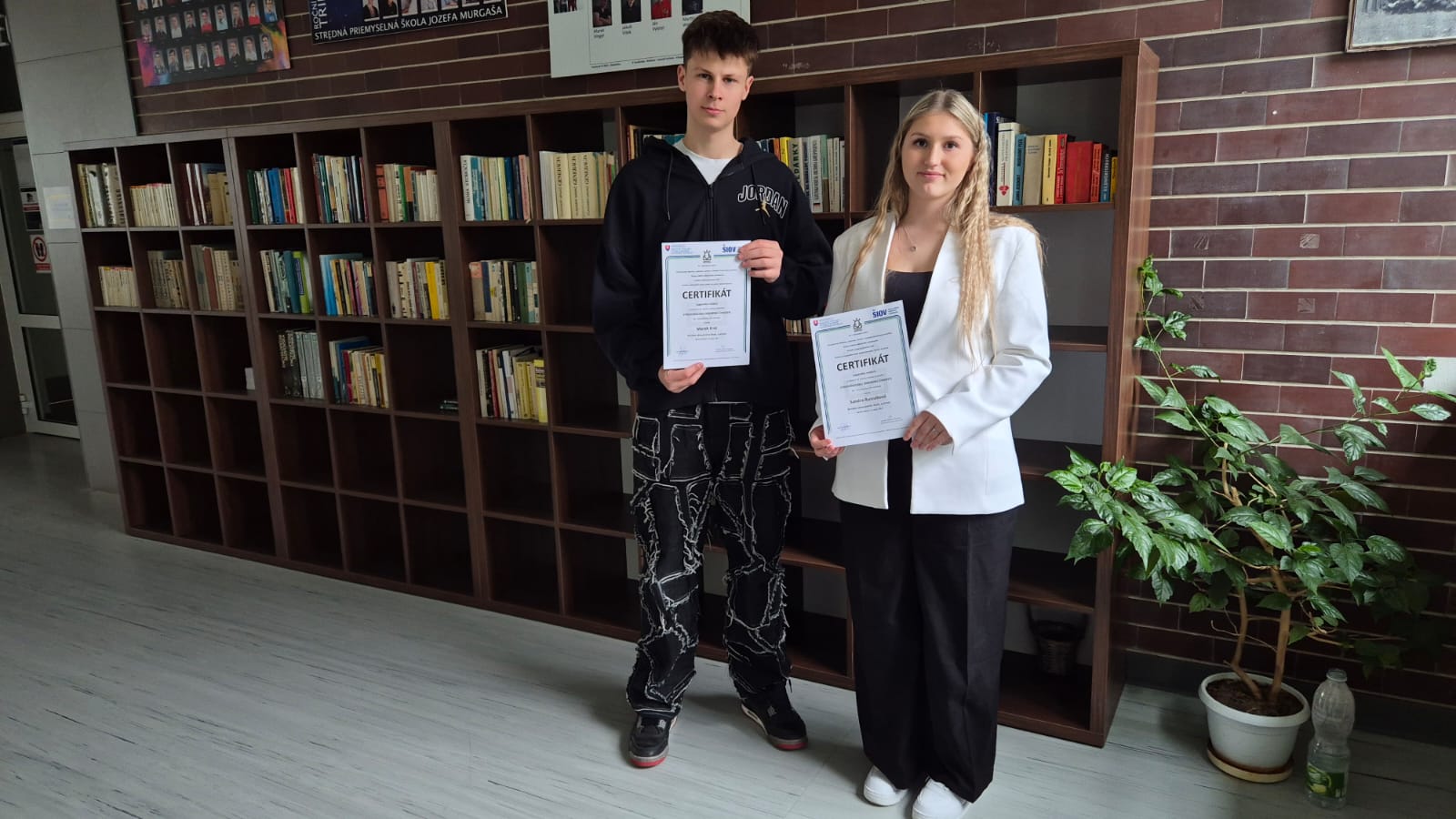 Sebastián Müller, Michal Popovič (3.B) s prácou Agresivita a násilie v školskom prostredí