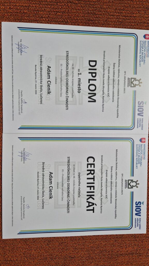 27. marca 2026Naši študenti úspešní na krajskom kole Stredoškolskej odbornej činnosti