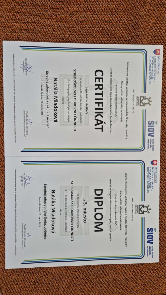 Krajské kolo Stredoškolskej odbornej činnosti opäť preverilo vedomosti, zručnosti a tvorivosť študentov stredných škôl z celého regiónu. Medzi nimi nechýbali ani študenti Strednej zdravotníckej školy v Lučenci, ktorí úspešne reprezentovali našu školu vo viacerých odborných kategóriách.