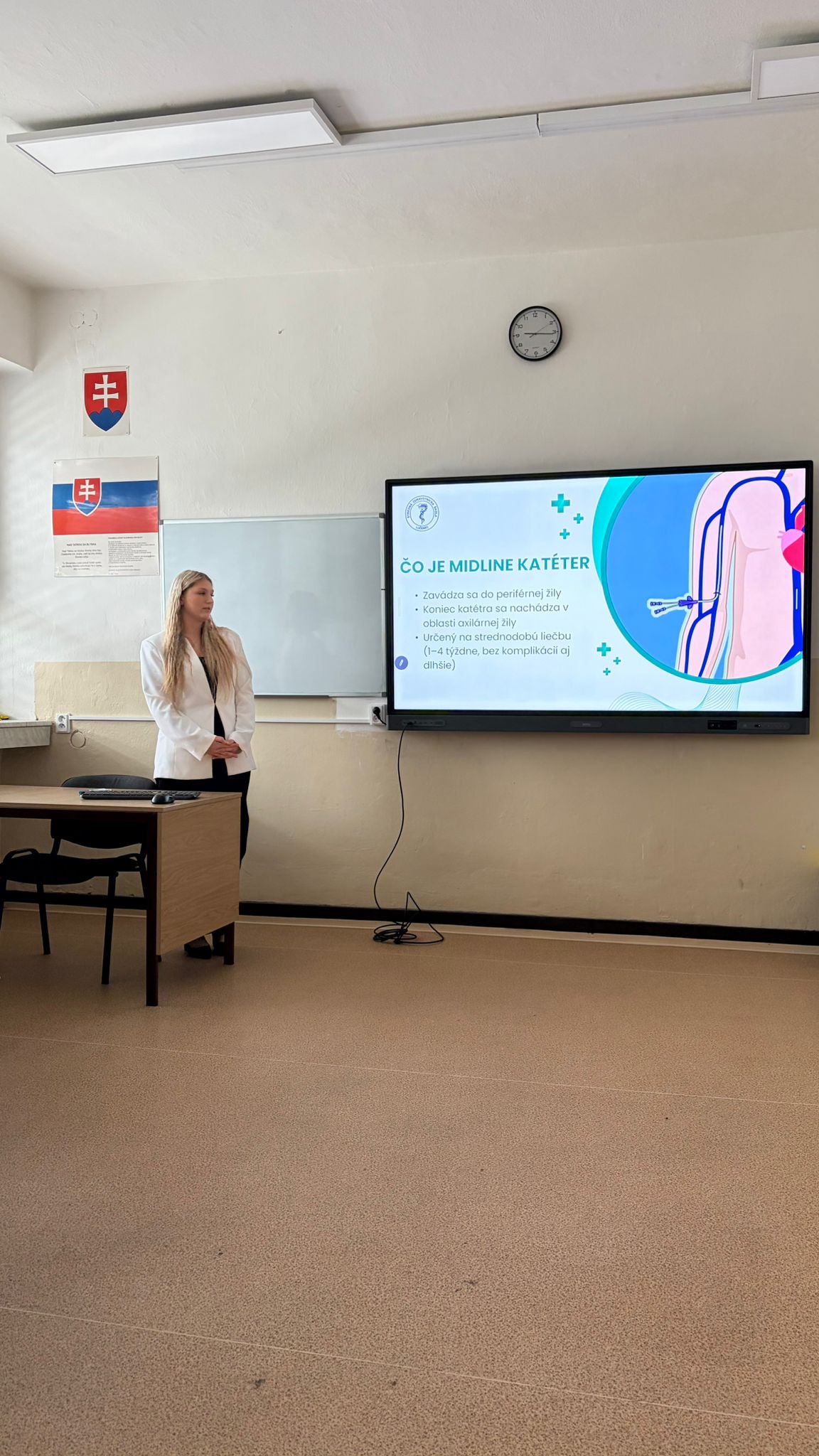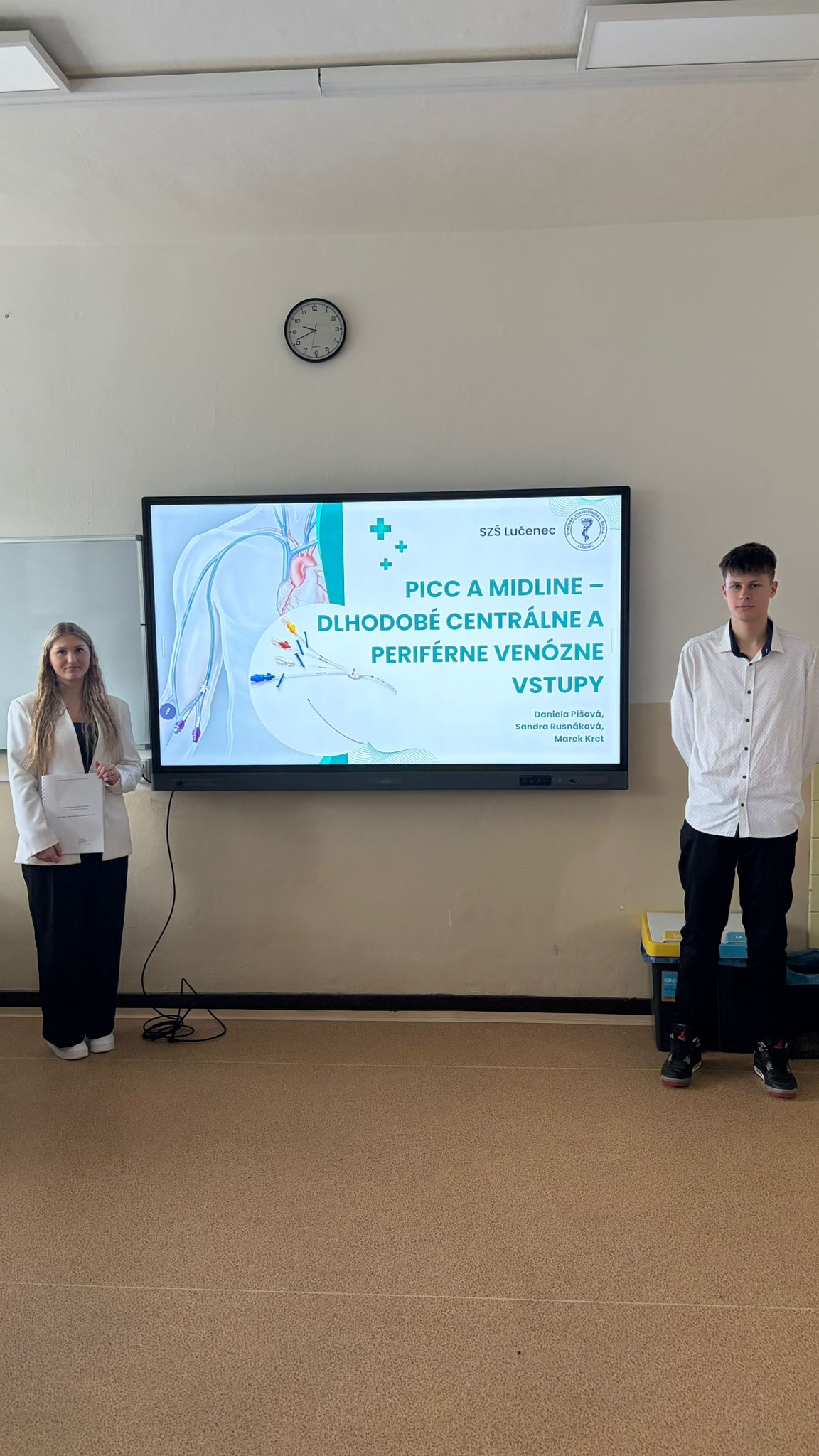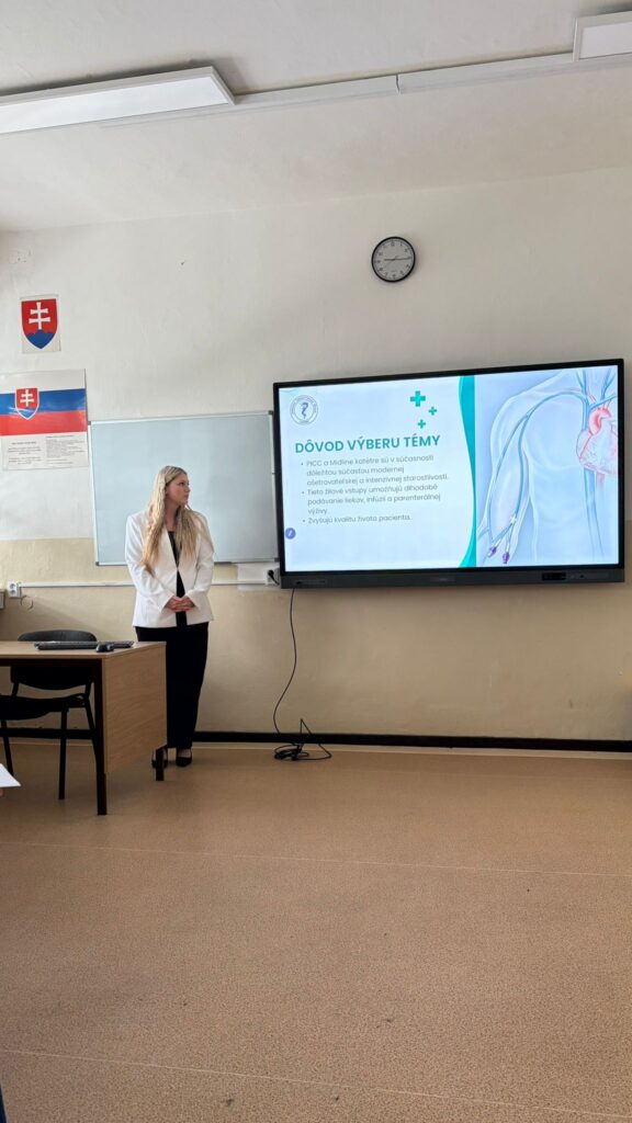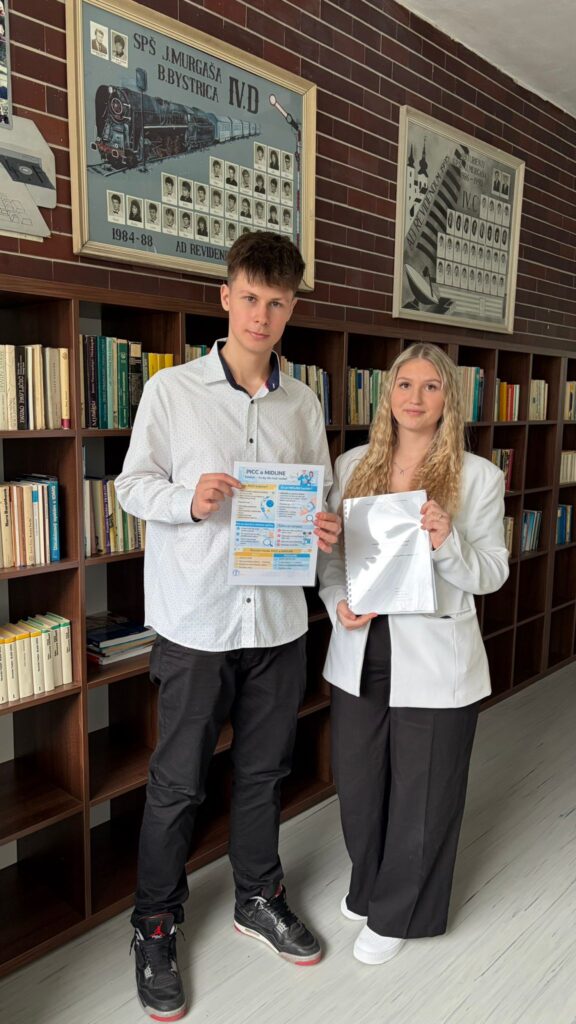 Daniela Píšová, Sandra Rusnáková, Marek Kret (3.A) s prácou PICC a MIDLINE – dlhodobé periférne a centrálne venózne vstupy