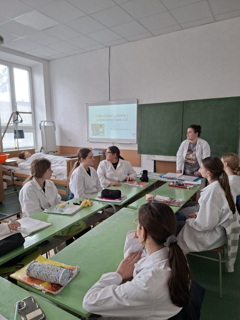 I tento rok sme Deň učiteľov oslávili netradične. Namiesto jedného dňa osláv sme si dopriali rovno celých päť dní veľkej výmeny. Od pondelka až do piatku si žiaci a učitelia vymenili svoje roly. Odvážni dobrovoľníci si pripravili hodiny chémie, slovenského a anglického jazyka, dejepisu, anatómie a fyziológie, patológie, ošetrovateľstva, ošetrovateľských techník i telesnej výchovy. Zatiaľ čo sa učitelia s úsmevom usádzali do lavíc, novopečení pedagógovia z radov žiakov zažívali krst ohňom. Tento týždeň však nebol len o zábave, ale najmä o vzájomnom pochopení a rešpekte. Nezabúdajme na to, že sa učíme jeden od druhého.