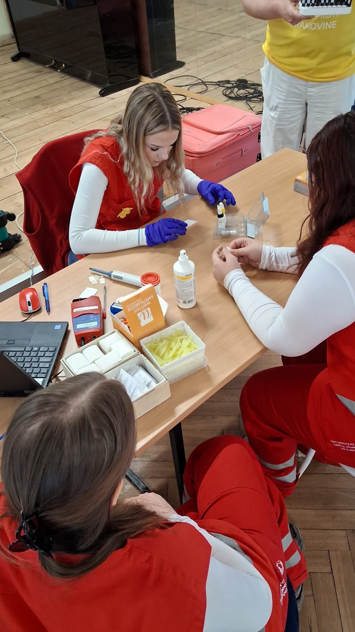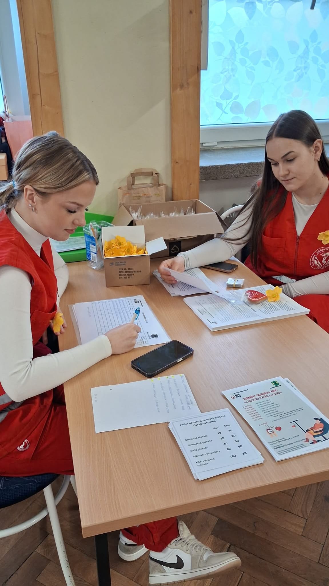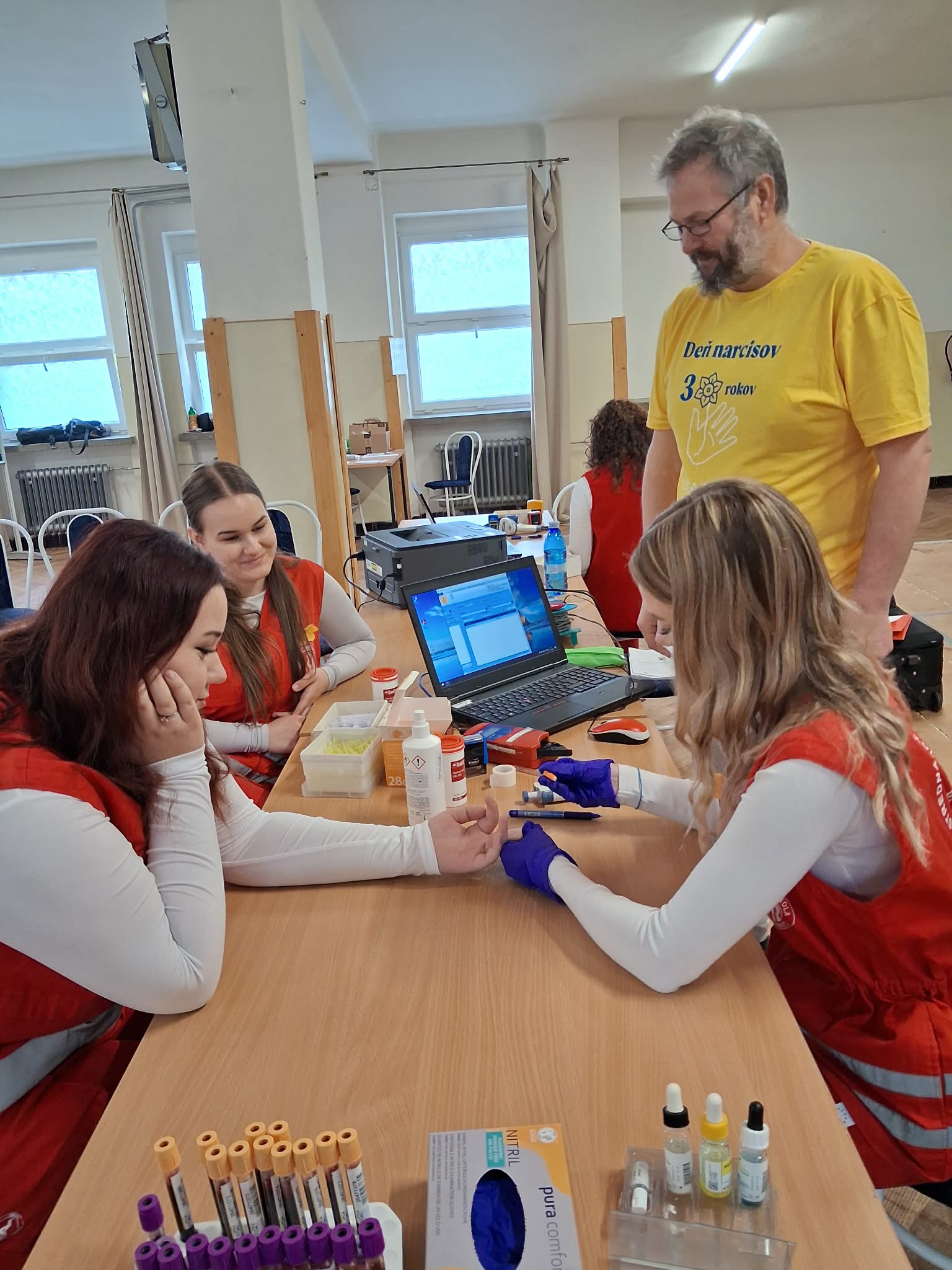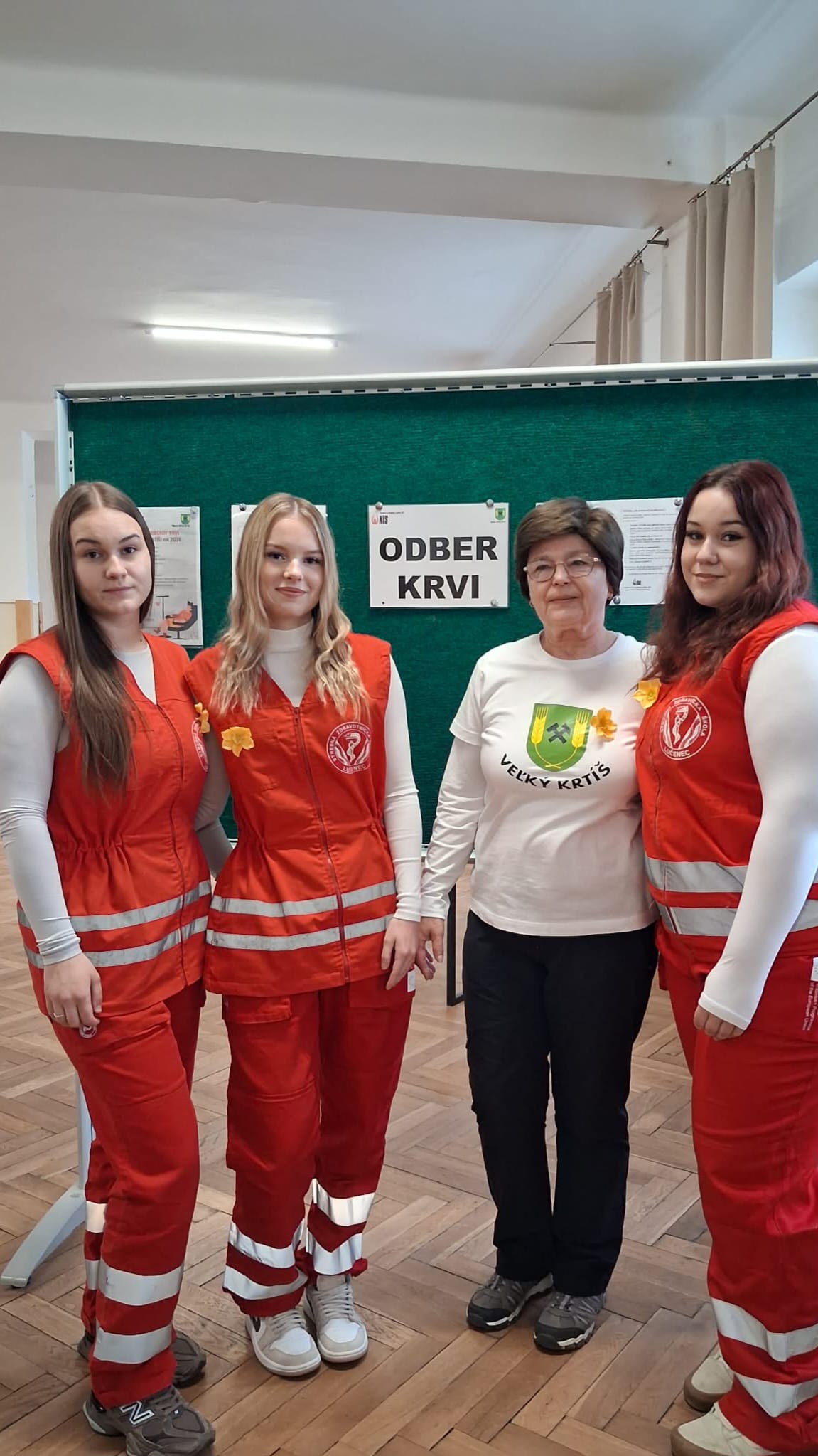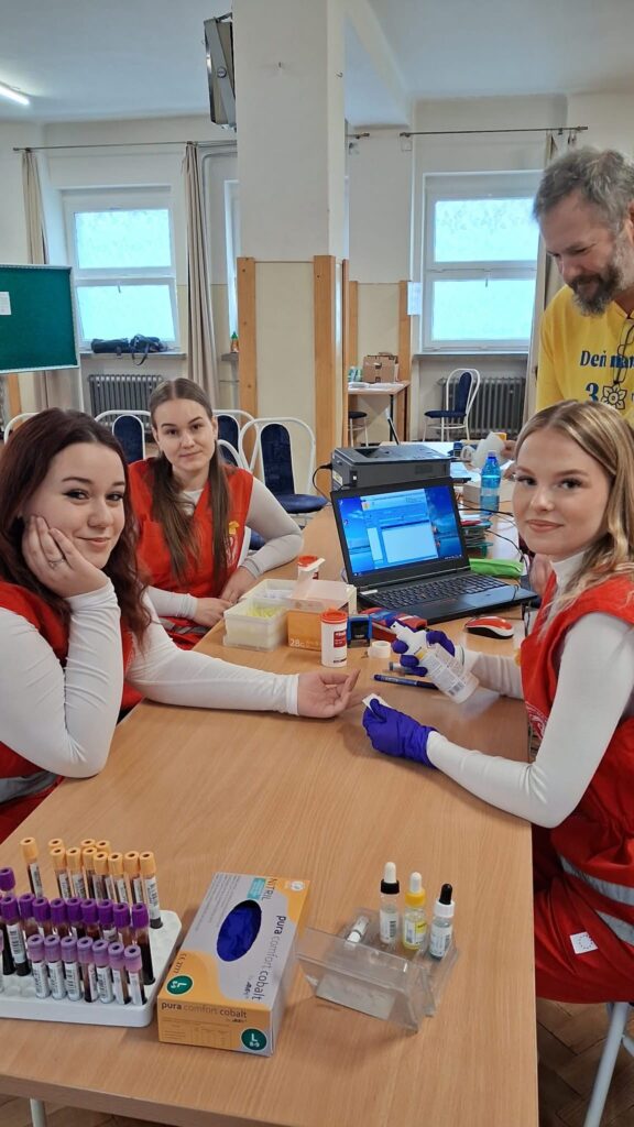 Počas nedávneho výjazdu na mobilný odber krvi vo Veľkom Krtíši nezostalo nič na náhodu. O bezpečnosť a pohodu darcov sa postarali naše šikovné žiačky, ktoré zabezpečovali zdravotnícky dozor v zložení — V. Tomaškinová, N. Orešanová a A. Gáliková. Dievčatá boli dôležitou súčasťou celého procesu. Dozerali na darcov po odbere, sledovali ich zdravotný stav a boli pripravené poskytnúť prvú pomoc pri prípadnej nevoľnosti. Okrem odborného dohľadu dodávali akcii aj potrebnú dávku ľudskosti a úsmevu, čo ocenili najmä prvodarcovia.