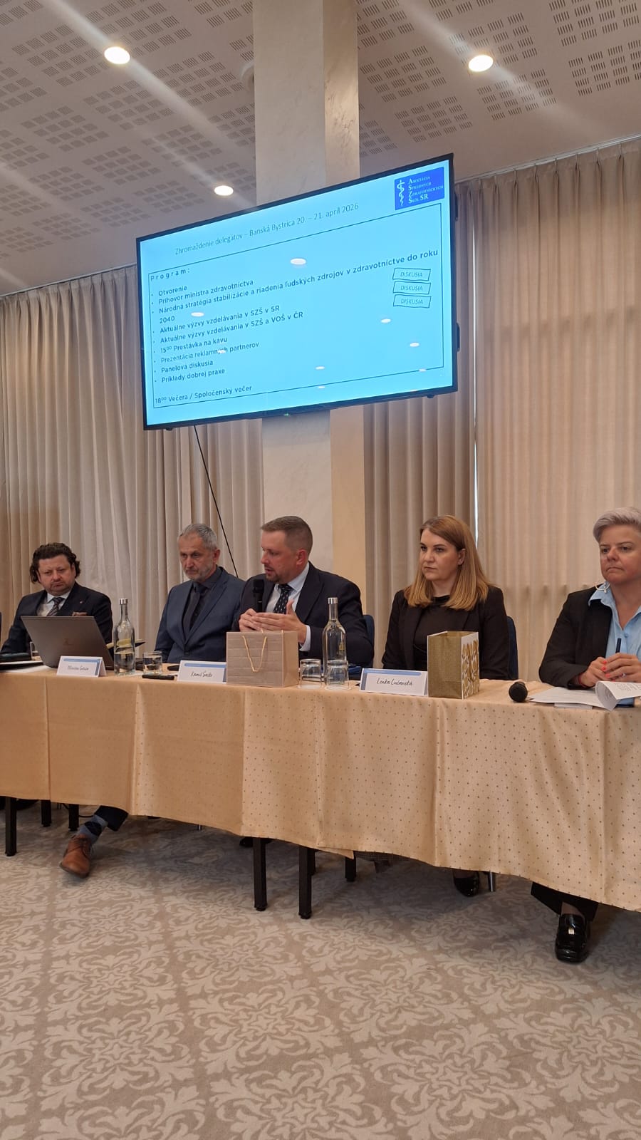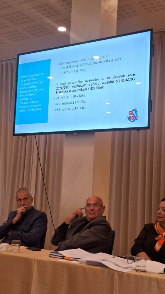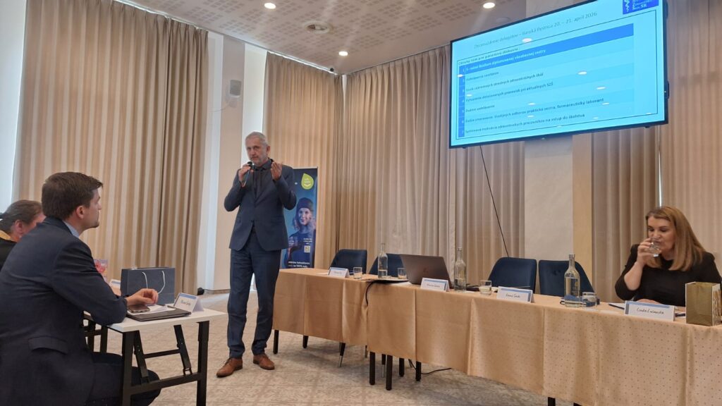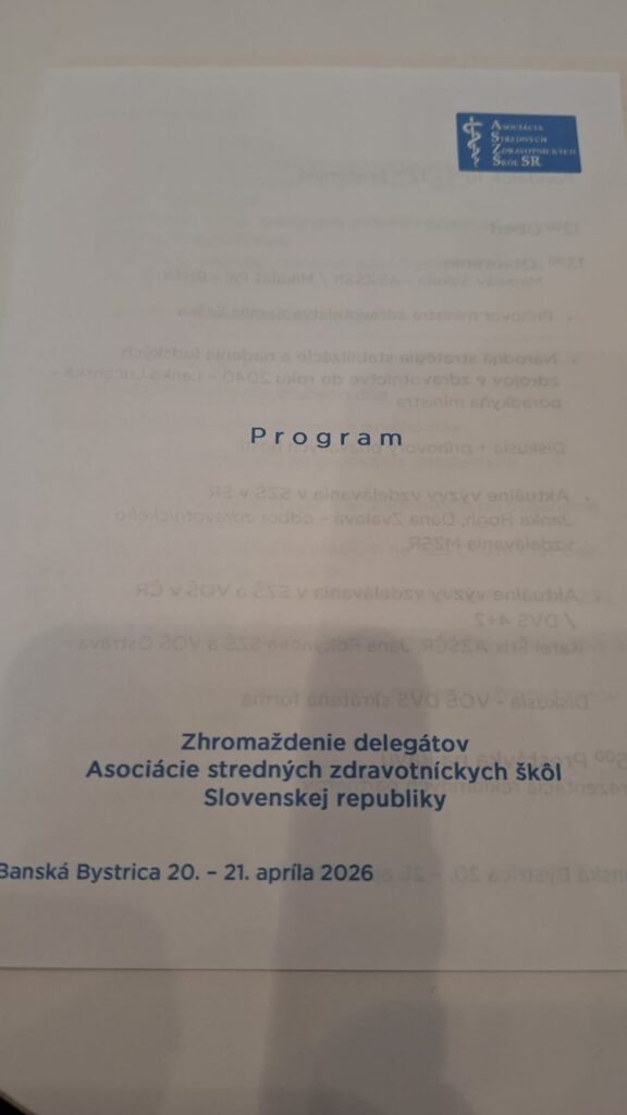 Dvojdňové rokovanie delegátov z 29-tich zdravotníckych škôl sa 20-teho a 21-ého apríla 2026 uskutočnilo v hoteli Arcade v Banskej Bystrici. Tak ako minulý rok aj tentokrát sa zúčastnili Mgr. Miroslav Sekula – riaditeľ školy a zároveň prezident asociácie a PhDr. Miroslava Sekulová, zástupkyňa riaditeľa školy pre odborné vzdelávanie. Privítali na rokovaní najvyššiu garnitúru ministerstva zdravotníctva. Ministra, hostí a delegátov uvítal podpredseda BB SK Mikuláš Pál a po ňom prezident ASZŠ Miroslav Sekula predstavil program a požiadal ministra zdravotníctva Kamila Šaška o úvodný príhovor. Minister v ňom odmietol „zlé, nesystémové a drahé riešenia, predniesol všeobecné výzvy ako: „Musíme si prestať klamať; my – nie vy; pracujeme na dostupnosti… je potrebné pravidelne odpočtovať…“, sám však vlastný odpočet od minulého roka neposkytol. Je nutné však priznať, že za celé obdobie existencie asociácie (31 rokov) je jediným ministrom zdravotníctva, ktorý sa tohto rokovania zúčastnil. Ďalšie bodu programu boli pragmatickejšie. Národnú stratégiu stabilizácie a riadenia ľudských zdrojov v zdravotníctve do roku 2040predstavila Lenka Lučanská – poradkyňa ministra; Aktuálne výzvy vzdelávania v SZŠ v SR odprezentovala Janka Hogh, riaditeľka odboru zdravotníckeho vzdelávania MZ SR. V rámci diskusie k uvedeným bodom vystúpili ďalší hostia – predseda SOZ ZaSS Michal Gedaj a podpredsedníčka Terézia Luptáková, prezident komory súkromných lekárov Marián Šóth i riaditeľ odboru zdravotníctva BBSK Martin Caudt. U všetkých rezonovala podpora potrebných zmien v sektore i zdravotníckom vzdelávaní so zameraním na lepšie využitie potenciálu praktických sestier a potreby skrátenia vzdelávania všeobecných sestier. Po prestávke sme dali slovo hosťom z Čiech. Predseda asociácie zdravotníckych škôl Karel Štix nám priblížil Aktuálne výzvy vzdelávania v ČR a po ňom zaujala miesto Jana Foltýnová z Ostravy , ktorá priblížila delegátom systém skráteného vzdelávacieho programu pre diplomované všeobecné sestry. V tomto pilotnom programe študenti odboru praktická sestra po treťom ročníku môžu zložiť skúšky pre povolanie ošetrovateľ, vo štvrtom zmaturovať a postúpiť do druhého ročníka DVS. Podvečer sme na rokovaní uvítali predsedu poslaneckého výboru NR SR Vladimíra Baláža. Ten sa vo svojom vystúpení negatívne vyjadril k vzdelávaniu všeobecných sestier a potrebu zmeny potvrdil pozvaním delegácie ASZŠSR na rokovanie výboru, ktorému predsedá.
