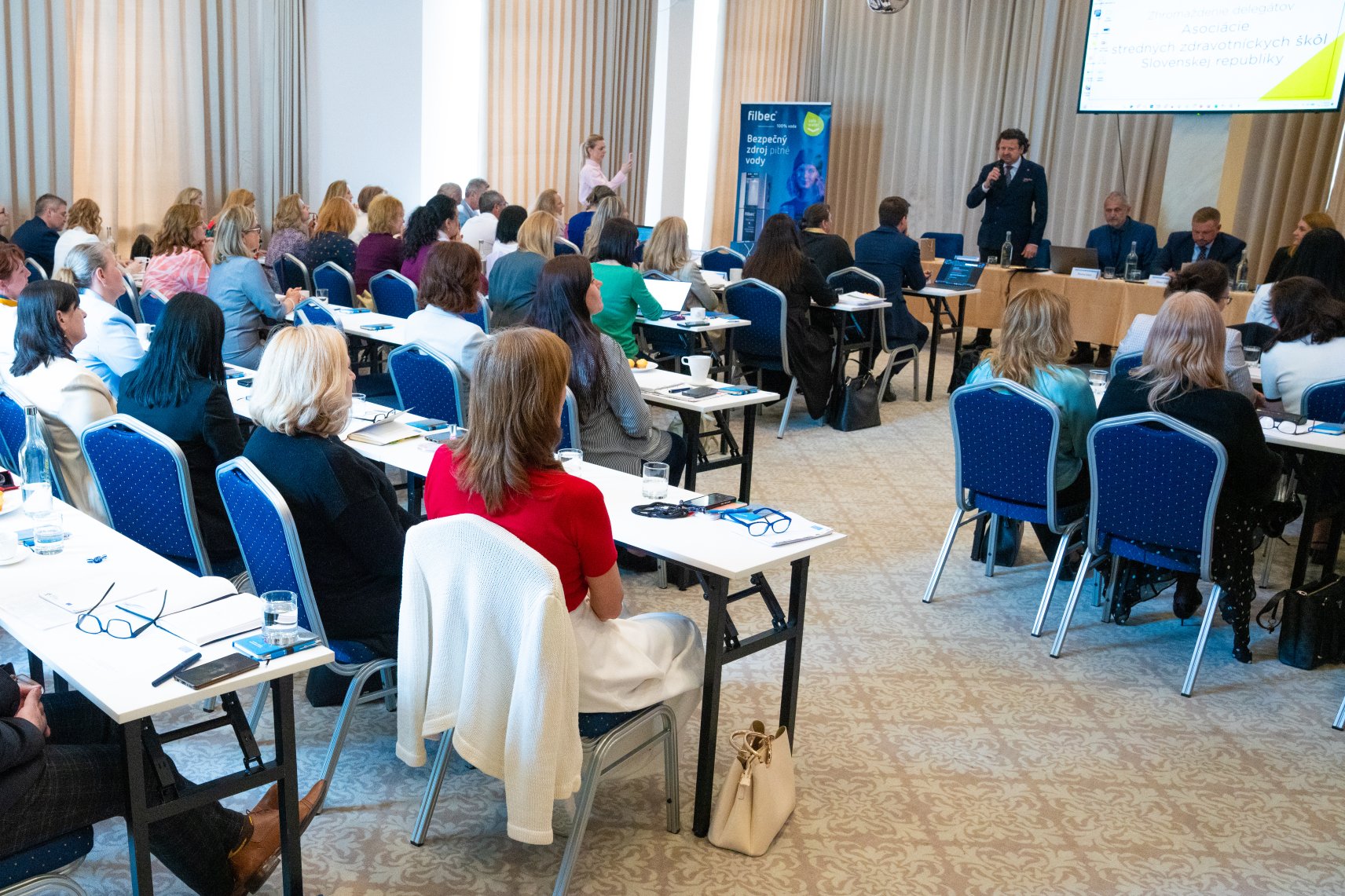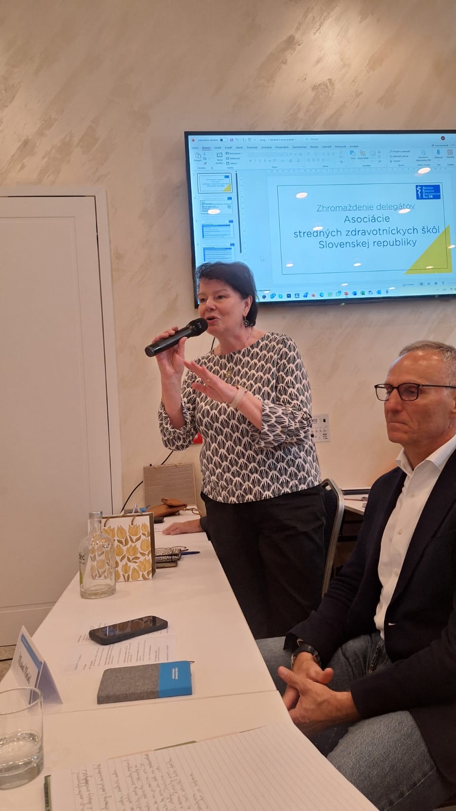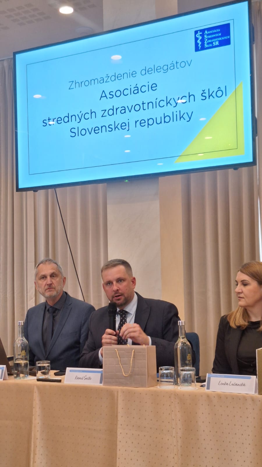 Dvojdňové rokovanie delegátov z 29-tich zdravotníckych škôl sa 20-teho a 21-ého apríla 2026 uskutočnilo v hoteli Arcade v Banskej Bystrici. Tak ako minulý rok aj tentokrát sa zúčastnili Mgr. Miroslav Sekula – riaditeľ školy a zároveň prezident asociácie a PhDr. Miroslava Sekulová, zástupkyňa riaditeľa školy pre odborné vzdelávanie. Privítali na rokovaní najvyššiu garnitúru ministerstva zdravotníctva. Ministra, hostí a delegátov uvítal podpredseda BB SK Mikuláš Pál a po ňom prezident ASZŠ Miroslav Sekula predstavil program a požiadal ministra zdravotníctva Kamila Šaška o úvodný príhovor. Minister v ňom odmietol „zlé, nesystémové a drahé riešenia, predniesol všeobecné výzvy ako: „Musíme si prestať klamať; my – nie vy; pracujeme na dostupnosti… je potrebné pravidelne odpočtovať…“, sám však vlastný odpočet od minulého roka neposkytol. Je nutné však priznať, že za celé obdobie existencie asociácie (31 rokov) je jediným ministrom zdravotníctva, ktorý sa tohto rokovania zúčastnil. Ďalšie bodu programu boli pragmatickejšie. Národnú stratégiu stabilizácie a riadenia ľudských zdrojov v zdravotníctve do roku 2040predstavila Lenka Lučanská – poradkyňa ministra; Aktuálne výzvy vzdelávania v SZŠ v SR odprezentovala Janka Hogh, riaditeľka odboru zdravotníckeho vzdelávania MZ SR. V rámci diskusie k uvedeným bodom vystúpili ďalší hostia – predseda SOZ ZaSS Michal Gedaj a podpredsedníčka Terézia Luptáková, prezident komory súkromných lekárov Marián Šóth i riaditeľ odboru zdravotníctva BBSK Martin Caudt. U všetkých rezonovala podpora potrebných zmien v sektore i zdravotníckom vzdelávaní so zameraním na lepšie využitie potenciálu praktických sestier a potreby skrátenia vzdelávania všeobecných sestier. Po prestávke sme dali slovo hosťom z Čiech. Predseda asociácie zdravotníckych škôl Karel Štix nám priblížil Aktuálne výzvy vzdelávania v ČR a po ňom zaujala miesto Jana Foltýnová z Ostravy , ktorá priblížila delegátom systém skráteného vzdelávacieho programu pre diplomované všeobecné sestry. V tomto pilotnom programe študenti odboru praktická sestra po treťom ročníku môžu zložiť skúšky pre povolanie ošetrovateľ, vo štvrtom zmaturovať a postúpiť do druhého ročníka DVS. Podvečer sme na rokovaní uvítali predsedu poslaneckého výboru NR SR Vladimíra Baláža. Ten sa vo svojom vystúpení negatívne vyjadril k vzdelávaniu všeobecných sestier a potrebu zmeny potvrdil pozvaním delegácie ASZŠSR na rokovanie výboru, ktorému predsedá.