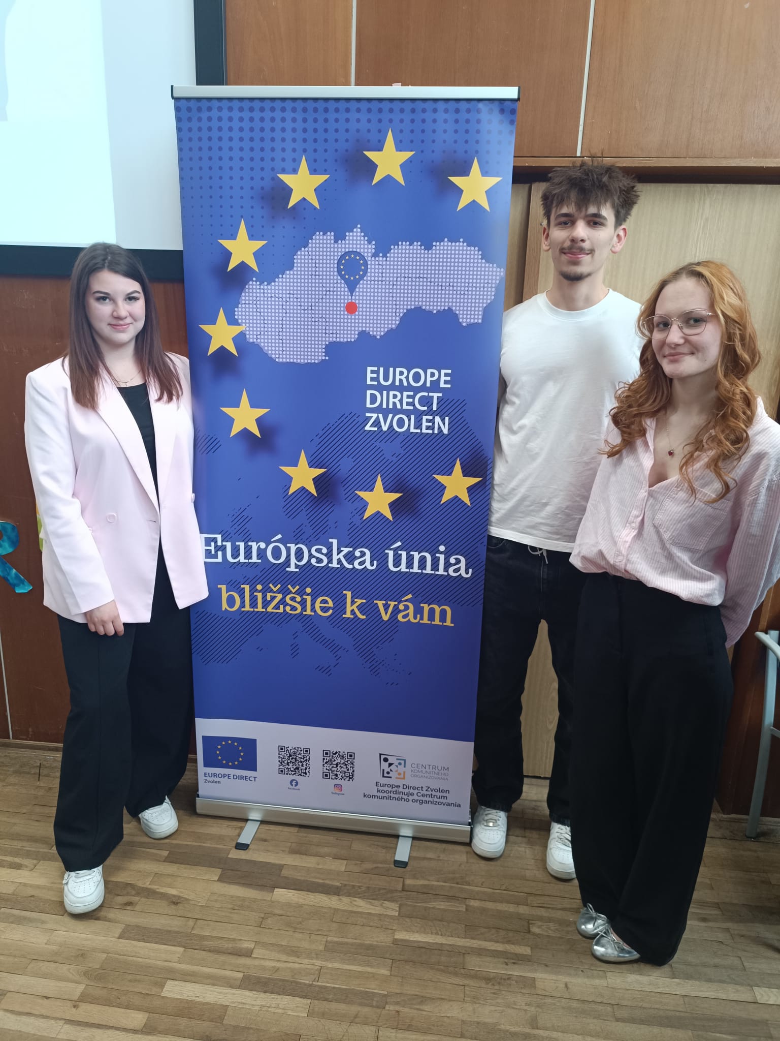 Trojica našich žiakov, v zložení Marco Gallay, Danielka Píšová a Nellka Vetraková, sa dňa 28. apríla 2026 zúčastnila na vedomostnej súťaži Mladý Európan 2026, ktorá sa konala vo Zvolene.