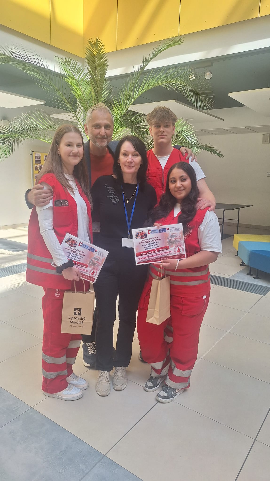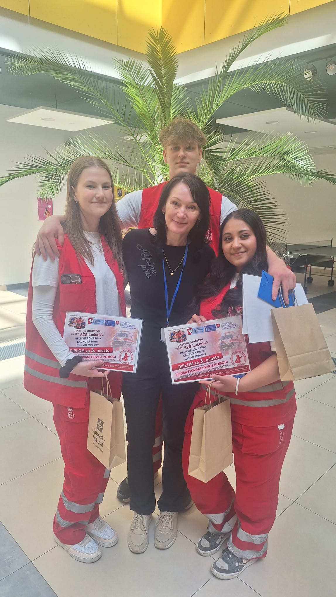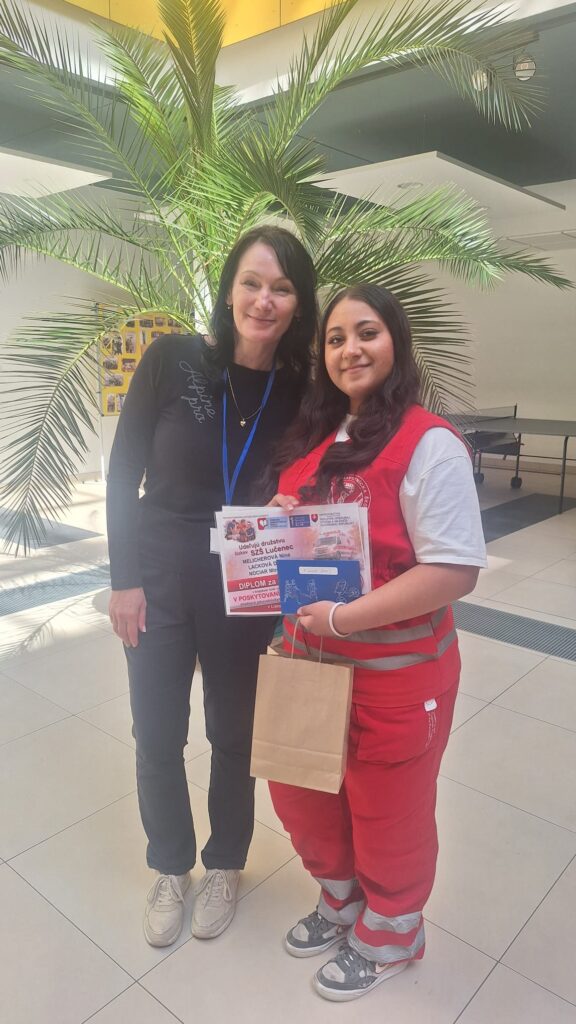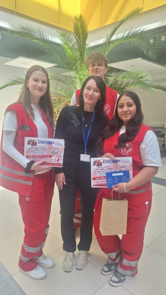 Regionálne kolo Súťaže v poskytovaní prvej pomoci SZŠ na Slovensku sa tento ročník konalo na SZŠ v Liptovskom Mikuláši. Súťaž podrobne preverila naše vedomosti aj praktické zručnosti v rôznych náročných situáciách. Začali sme ťažkým testom a ďalej súťaž pozostávala z viacerých modelových stanovíšť. Na jednom z nich sme riešili autonehodu, pri ktorej bolo potrebné rýchlo a správne poskytnúť prvú pomoc zraneným. Ďalšou výzvou bola opitá žena, kde sme si museli poradiť nielen s ošetrením, ale aj s komplikovanou komunikáciou. Najnáročnejšou situáciou bola resuscitácia dieťaťa, ktoré nedýchalo. V tejto úlohe sme museli preukázať správny postup a hlavne zachovať pokoj aj pod tlakom. Nechýbalo ani ošetrenie popálenín, kde sme si zopakovali dôležité zásady prvej pomoci a ich správne uplatnenie v praxi. Okrem súťažných disciplín sme sa zúčastnili aj sprievodného programu. Absolvovali sme prednášky o dentálnej hygiene, kde sme sa dozvedeli viac o správnej starostlivosti o zuby. Zaujímavou časťou boli aj ukážky masáží, ktoré pomáhajú pri regenerácii a uvoľnení tela. Súťaž bola pre nás veľkým prínosom. Nielenže sme si overili svoje schopnosti, ale zároveň sme získali nové skúsenosti, ktoré môžeme využiť v reálnych situáciách. Veľmi sa tešíme z postupu, že nám bronzová medaila zabezpečila postup do Finále celoštátneho kola tejto prestížnej súťaže. Tak nám držte palce!